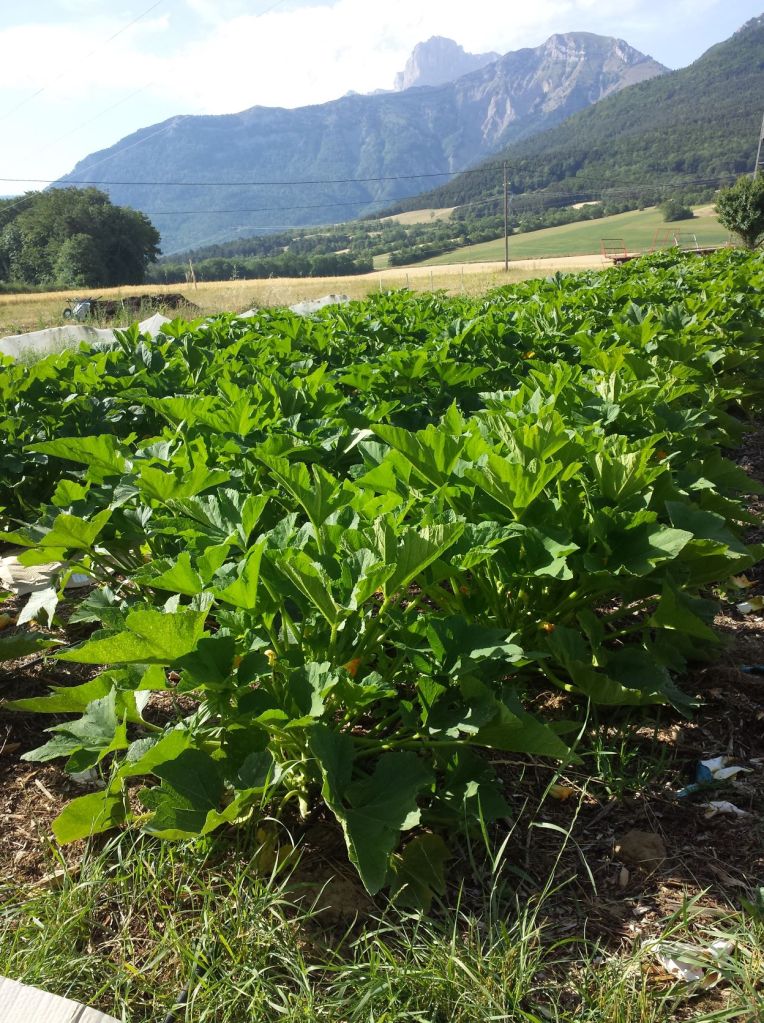 Une de nos belles réussites : l’évolution des pâtissons, de la préparation des planches fin mai, …