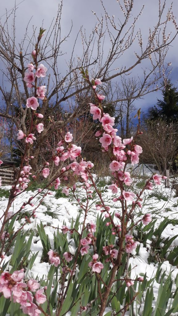 La surprise de ce matin!La délicatesse des fleurs de pêcher m’attendrit chaque année Alors? La terre s’améliore ? Oui! On est content des changements qu’on obtient avec nos apports de broyat végétal!Nouvelle artiste pour nos futures étiquettes de confiture : c’est beau, n’est ce pas? Merci à elle ( elle se reconnaitra) 🥰