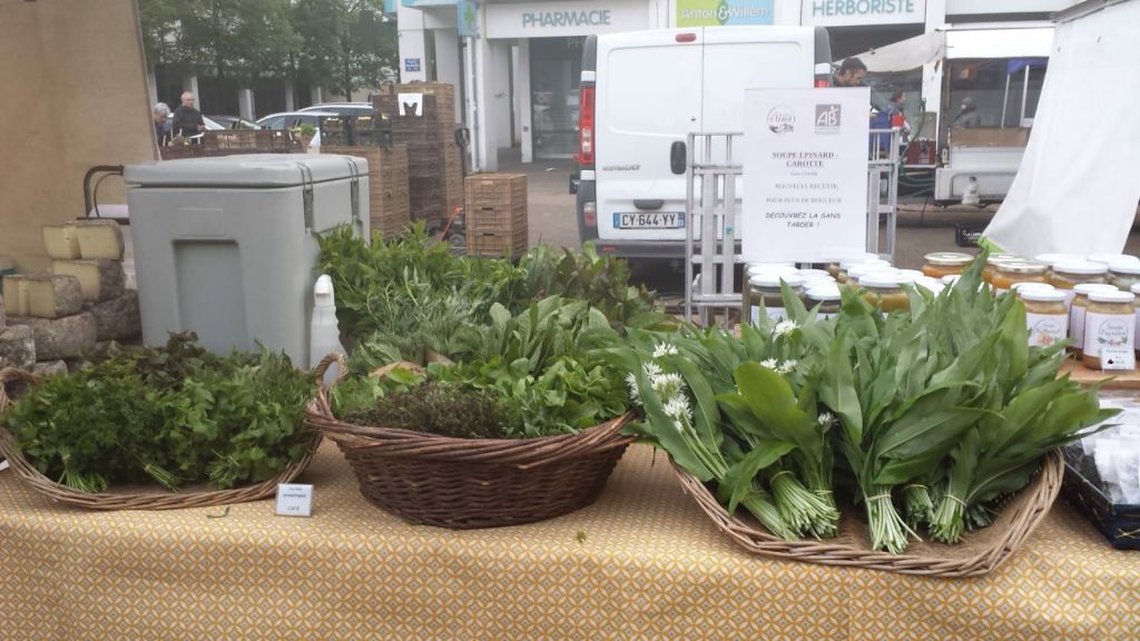 Préparation des planches pour la plantation des tomates ! Les voilà ! L’été approche ! Mais pour l’instant, ce sont plutôt les fèves, les pois gourmands et la roquette qui produisent.Pique-nique à la fermeLes aromates au marché HocheUne visite dans la serre : il venait chercher des bouts de ficelle pour son nid 🙂